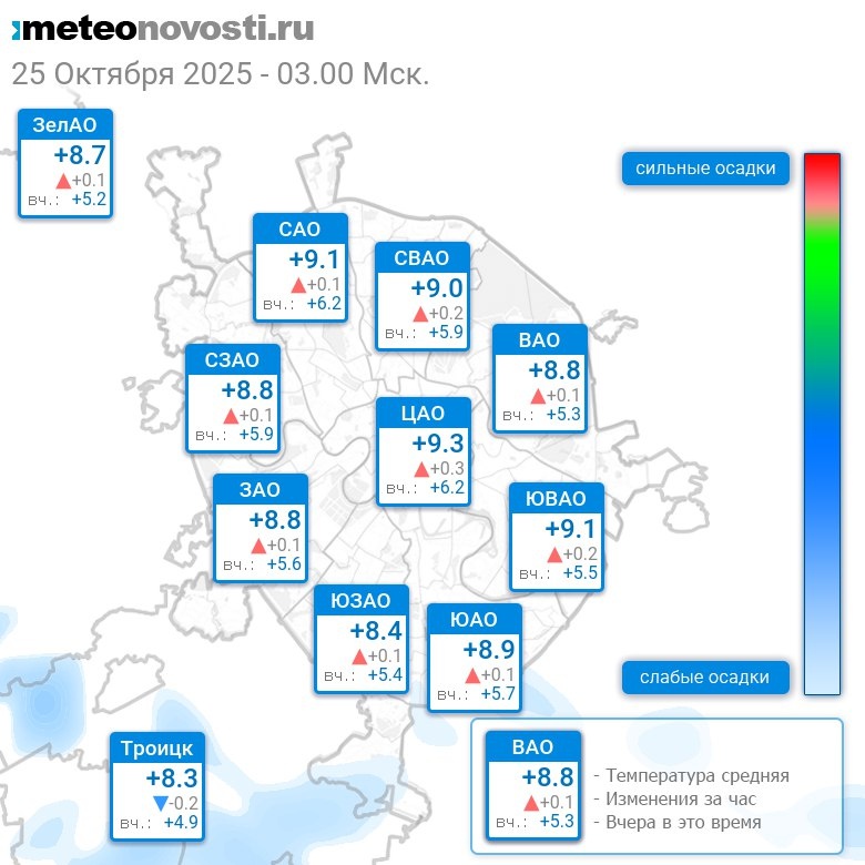 В 3:00 в Москве было от +8.2°C до +9.5°C, средняя температура +8.9°C #погода #Москва #осень #температура #25октября #суббота