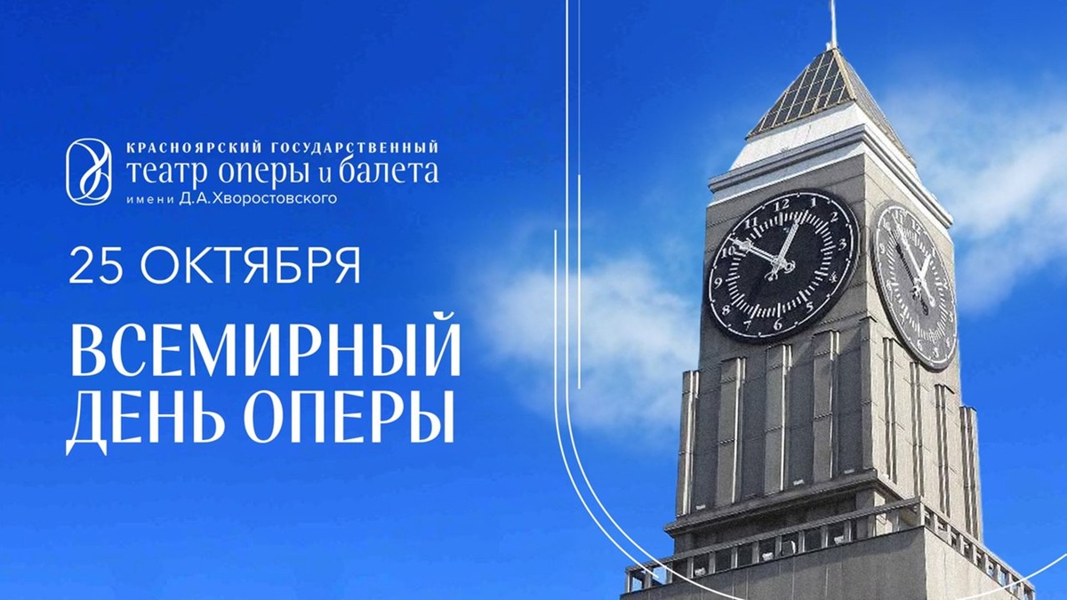 Красноярск запоет во Всемирный день оперы Всемирный день оперы отмечают 25 октября, в день рождения композиторов Жоржа Бизе и Иоганна Штрауса. В этот день в городских пространствах, учреждениях, в парках и на площадях Красноярска зазвучат фрагменты опер в исполнении солистов Красноярского театра оперы и балета имени Дмитрия Хворостовского. Главные городские часы в честь праздника озвучат знаменитый отрывок из пьесы «Севильский цирюльник» в исполнении красноярского артиста Дениса Гречишкина. Он прозвучит в 09:00, 12:00, 15:00, 18:00, 21:00. Также к празднику присоединяться школы Красноярска, Сибирский Федеральный университет, Красноярское художественное училище имени В. И. Сурикова, ТРЦ «Планета», Международный аэропорт Красноярск, предприятия компании РУСАЛ, Красгорпарк (парк «Сибсталь», озеро-парк «Октябрьский» и мост «Арфа») и Татышев-парк. Здесь в течение дня будут звучать оперные арии в исполнении наших солистов. Фото: Красноярский Театр оперы и балета Новости Сибири | Прислать
