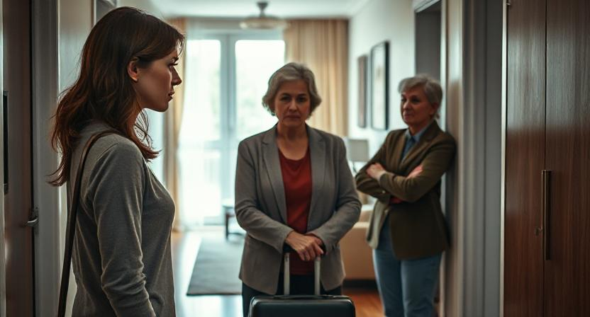 Я медленно поднялась обратно. У дверей квартиры стояла свекровь с чемоданами. Увидев меня, она процедила: