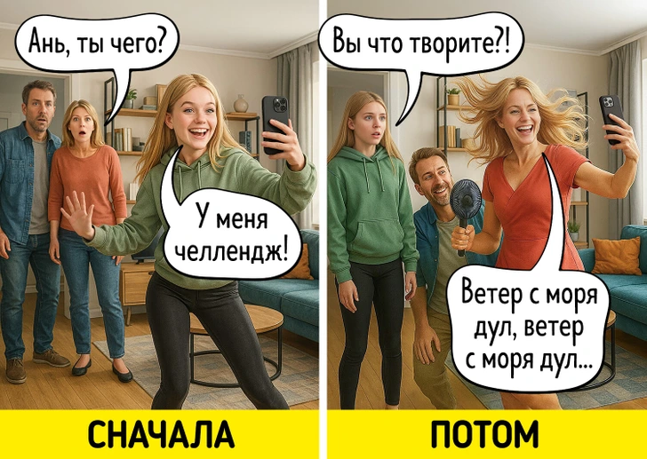Интересно поразмышлять, к каким неожиданным и, возможно, комичным результатам могут привести такие попытки. Что, если применить творческий и нестандартный подход к решению этой задачи? Современные технологии, например, открывают новые возможности для визуализации этой вечной дилеммы. Можно представить себе серию творческих работ, где с юмором и теплотой обыгрываются ситуации, в которых взрослые пытаются примерить на себя реалии молодого поколения.