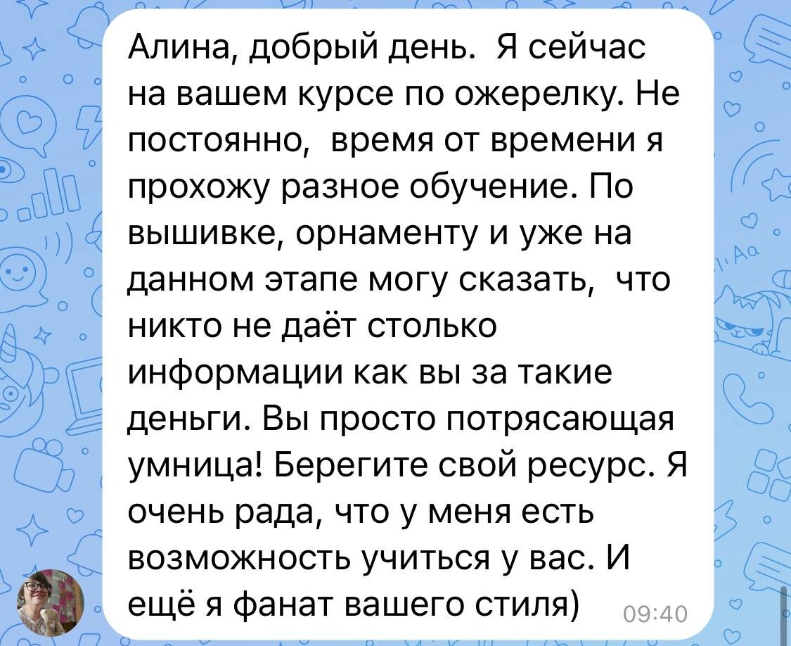 Так приятно получать такие отклики! Да, на курсе много дополнительной информации по истории украшений, материаловедении, даже про костюмы говорим) Кто-то, конечно, скажет, что это вода) Но нет!