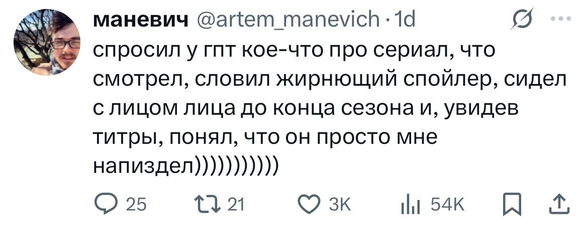 ИИ не выдает спойлеры, ИИ просто обманывает.