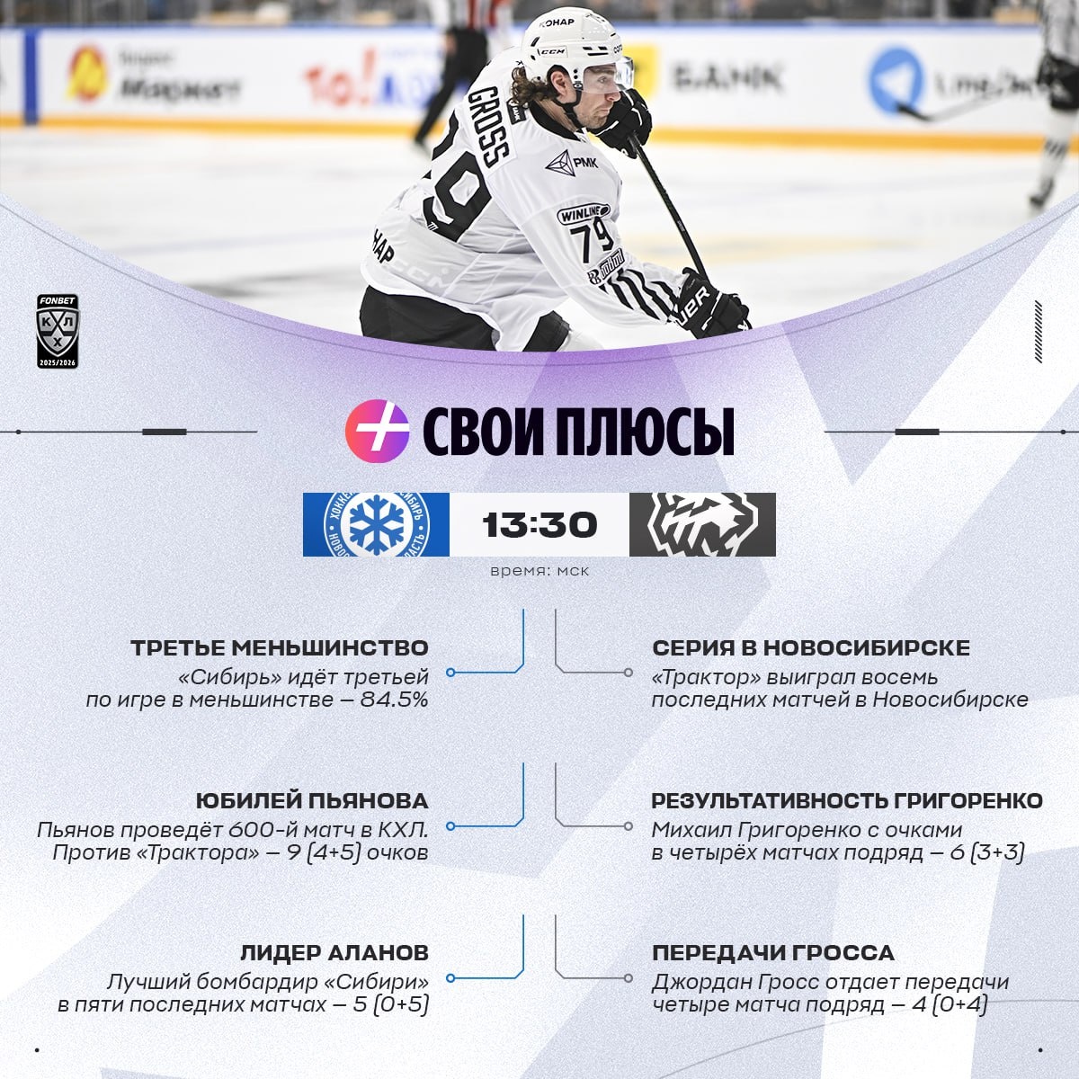 600-я игра Пьянова ❄️, эффектное возвращение Хохлачёва 💚 — у каждой команды есть Свои Плюсы. На какие стоит обратить внимание сегодня?