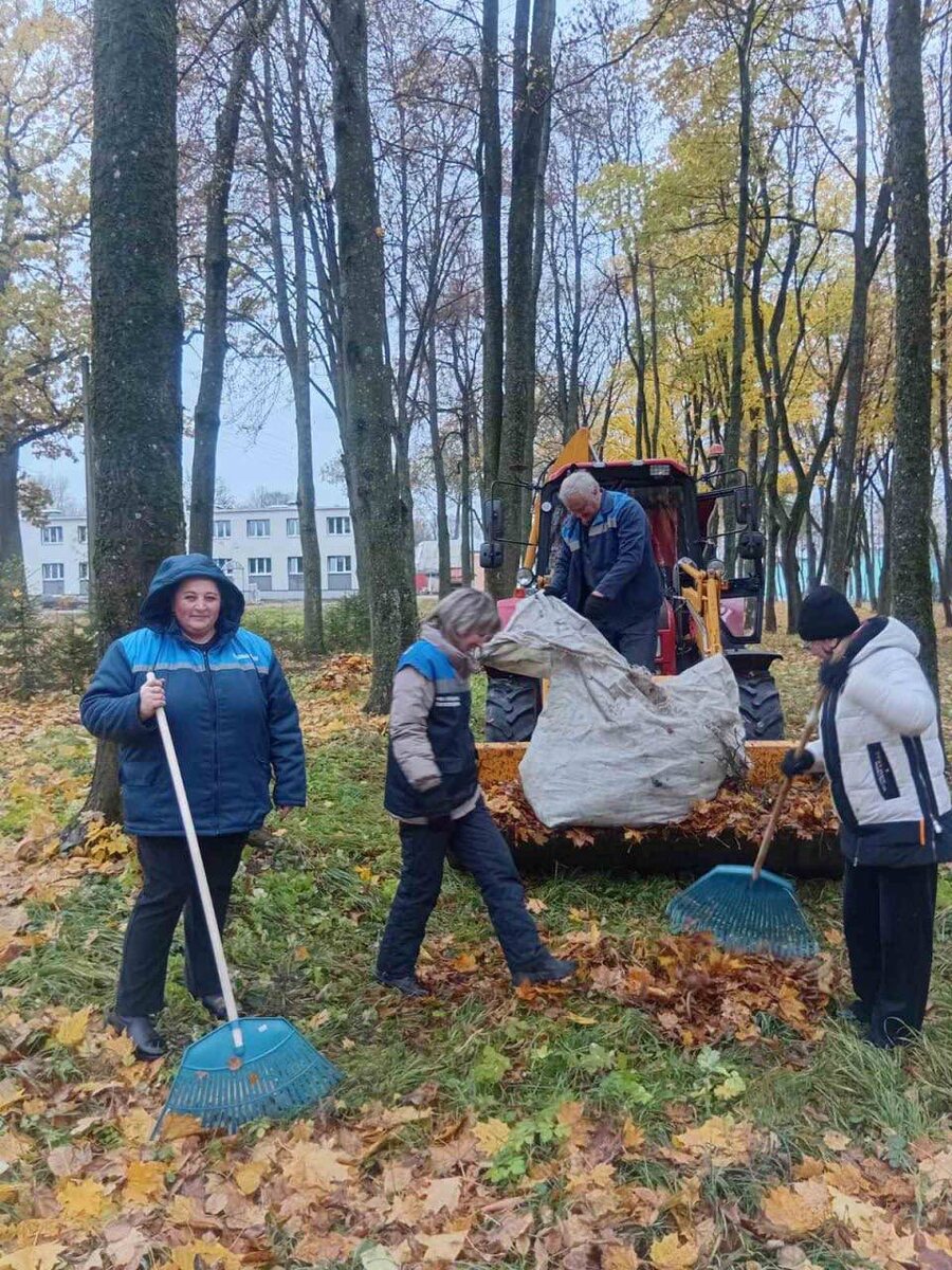 💚Свой вклад в благоустройство родного края внесли и работники Бешенковичского участка водоканала 🍃Занимались уборкой парка от листвы и закрепленной улицы Романова в райцентре. ▪️А также в команде с представителями "Энергосбыта" окашивали МТФ "Лобачево" ГП «ПолитотделецАгро".