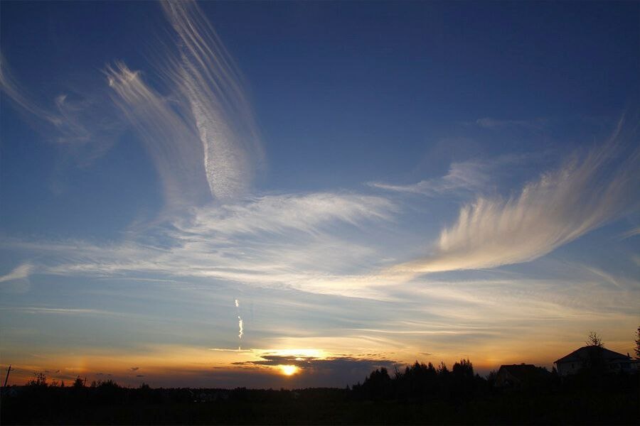 Явление "крыльев Ангела" на небе можно воспринимать не просто как природное, а как божественно-природное. "Перья" могут появиться в определённом пространстве, если в нём будет присутствовать электрическое статическое поле (ЭСП). "Минус" создаётся из Природы (Богоматери). "Плюс" - из Бога (Св. Духа). И тогда в ЭСП диполи (молекулы воды) выстраиваются по силовым потокам ЭСП "цепочкой", и их "обмывает" магнитный ветер - тёмная материя (ТМ) с позитивным потенциалом, что и воспринимается нами как визуальный эффект "крыльев". То есть Мать (Природа) водила Кистью, а Бог (Св. Дух) под кисть "клал" краски - красил. Если Бога нет, а есть только Природа, то это всё её чудачества. Но если есть Бог, то это Его исполнение цветом, в то время как сами узоры - Явление БогоМатери-Природы. Всё научно! 🤓 Если, конечно, иметь ум чтобы это увидеть, ощутить и впитать!😁