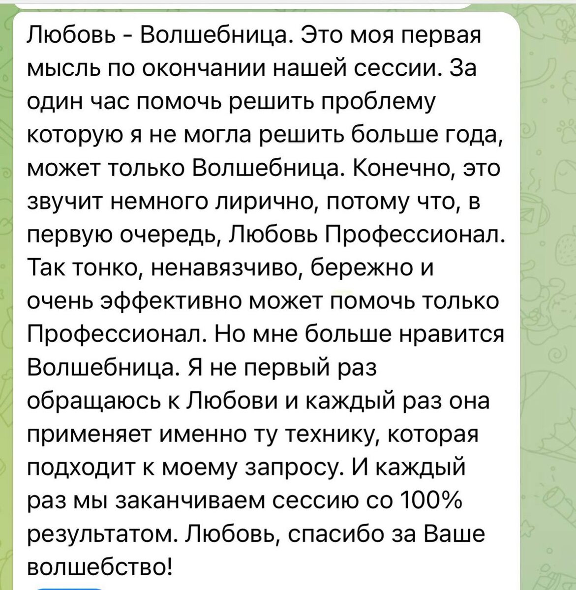 🌱 Отзывы моих клиентов — это моё вдохновение! 🌱 Каждый отзыв — это не просто слова, это свидетельство того, как мы вместе движемся к лучшему пониманию себя и своей жизни. Эти отклики невероятно важны для меня, потому что они показывают, какой путь мы прошли, и как важен процесс доверия и изменений. Я делюсь ими с вами, чтобы вы могли увидеть, как совместная работа может трансформировать и приносить реальные результаты. Имена клиентов я оставила скрытыми, чтобы сохранить конфиденциальность и уважение к личным границам. Спасибо за доверие и поддержку! 💛