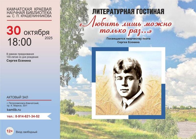 π Π ΠΊΠ°ΠΌΡΠ°ΡΡΠΊΠΎΠΉ Π±ΠΈΠ±Π»ΠΈΠΎΡΠ΅ΠΊΠ΅ ΠΏΡΠΎΠΉΠ΄ΡΡ Π»ΠΈΡΠ΅ΡΠ°ΡΡΡΠ½ΡΠΉ Π²Π΅ΡΠ΅Ρ Β«ΠΡΠ±ΠΈΡΡ Π»ΠΈΡΡ ΠΌΠΎΠΆΠ½ΠΎ ΡΠΎΠ»ΡΠΊΠΎ ΡΠ°Π·Β» 30 ΠΎΠΊΡΡΠ±ΡΡ Π² ΠΠ°ΠΌΡΠ°ΡΡΠΊΠΎΠΉ ΠΊΡΠ°Π΅Π²ΠΎΠΉ Π±ΠΈΠ±Π»ΠΈΠΎΡΠ΅ΠΊΠ΅ ΠΈΠΌΠ΅Π½ΠΈ Π‘. ΠΡΠ°ΡΠ΅Π½ΠΈΠ½Π½ΠΈΠΊΠΎΠ²Π° ΠΏΡΠΎΠΉΠ΄ΡΡ Π»ΠΈΡΠ΅ΡΠ°ΡΡΡΠ½Π°Ρ Π³ΠΎΡΡΠΈΠ½Π°Ρ Β«ΠΡΠ±ΠΈΡΡ Π»ΠΈΡΡ ΠΌΠΎΠΆΠ½ΠΎ ΡΠΎΠ»ΡΠΊΠΎ ΡΠ°Π·Β», ΠΏΠΎΡΠ²ΡΡΡΠ½Π½Π°Ρ 130-Π»Π΅ΡΠΈΡ ΡΠΎ Π΄Π½Ρ ΡΠΎΠΆΠ΄Π΅Π½ΠΈΡ Π‘Π΅ΡΠ³Π΅Ρ ΠΡΠ΅Π½ΠΈΠ½Π°, ΠΏΠ΅ΡΠ΅Π΄Π°ΡΡ Π ΠΠ Β«ΠΠΠΠ§ΠΠ’ΠΠ-ΠΠΠ€ΠΠ ΠΒ». ΠΠ·Π²Π΅ΡΡΠ½ΠΎ, ΡΡΠΎ ΠΏΠΎΡΡ Π±ΡΠ» ΡΠ΅Π»ΠΎΠ²Π΅ΠΊΠΎΠΌ Π²Π»ΡΠ±ΡΠΈΠ²ΡΠΌ, ΡΠΎΠΌΠ°Π½ΡΠΈΡΠ½ΡΠΌ ΠΈ ΡΠ΅ΠΌΠ° Π»ΡΠ±Π²ΠΈ ΠΏΡΠΎΠ½ΠΈΠ·ΡΠ²Π°Π΅Ρ Π΅Π³ΠΎ ΠΏΠΎΡΠ·ΠΈΡ. Π‘Π΅ΡΠ³Π΅ΠΉ ΠΡΠ΅Π½ΠΈΠ½ Π² ΡΡΠΈΡ