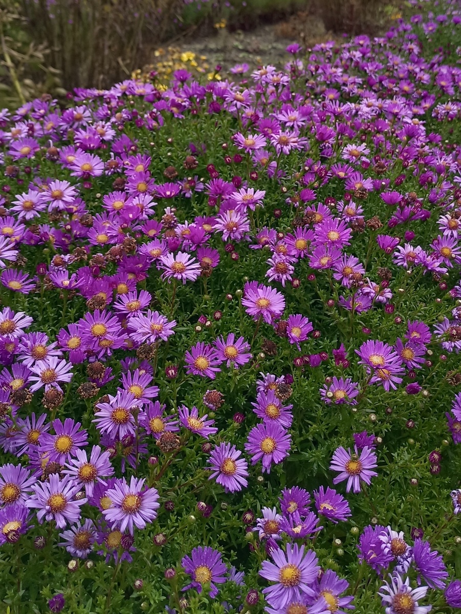 Сентябринки, или октябринки, или астры осенние на обложке не мои, к сожалению. Сфотографировала их на какой-то станции, когда возвращались домой. Раньше у меня тоже росли, но почему-то не пережили одной суровой зимы. Хотя пишут, что морозостойкость высокая. А что дома? Дома были заморозки до -3 в конце сентября. Конечно, все однолетние в кашпо замёрзли. Многолетние более стойкие, некоторые цветут и в октябре. Например, рудбекия. Цвела лапчатка и жёлтая, и розовая до середины октября. Розовая летом выгорала до белой, а осенью по-настоящему розовая. Наверное , надо её в тень пересадить. Тысячелистник, который заявлен, как Вишнёвая королева, который на деле оказался просто розовым, тоже цветёт до сих пор. Люпин решил повторно поцвести, несмотря на заморозки. Хризантема цвела до октябрьских недавних заморозков до минус пяти. Анютиным глазкам мороз не страшен, они так и уйдут под снег цветущими. Нашла за забором дикие колокольчики, пересадила их к себе. Интересно , приживутся? Садово-ого