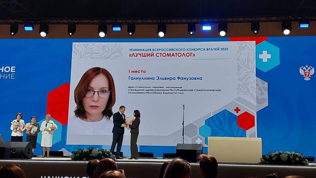 Награды врачи получили из рук министра здравоохранения России Михаила Мурашко в Москве на конгрессе «Национальное здравоохранение» в Москве, сообщает пресс-служба минздрава республики. Среди десятков лучших врачей названы пятеро представителей Башкирии. Лучший стоматолог России — Эльвира Галимуллина из Республиканской стоматологической поликлиники. Лучший акушер — Алита Борискова из городской больницы Сибая. Лучший онколог — Адип Арсланов из Нефтекамского филиала Республиканского онкологического центра. Лучший участковый терапевт — Флюза Ахметзянова из городской больницы № 13 Уфы. Лучший участковый педиатр — Эльза Лутфуллина из Караидельской районной больницы. Фото: пресс-служба министерства здравоохранения Башкирии.