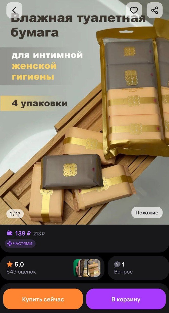Влажная туалетная бумага с экстрактом гамамелиса 22 33 за 139₽
