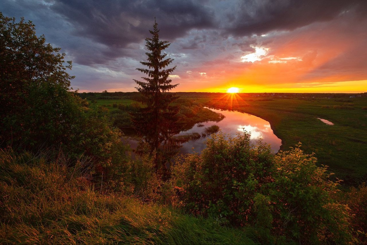 Закат на Тоймушке. Село Верхняя Тойма, Архангельская область.