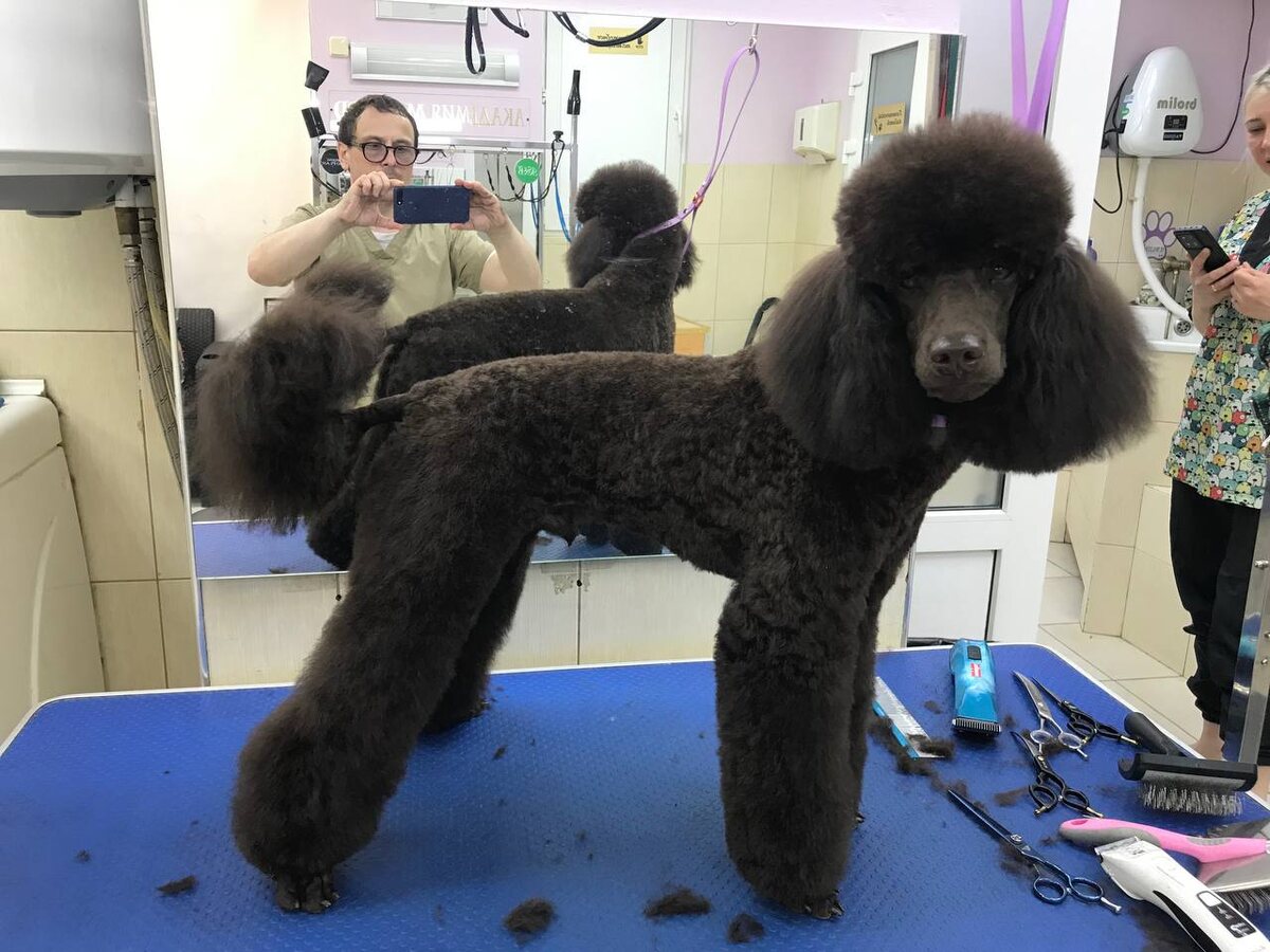 Пудель малый. Май 2025. Тело пострижено ножом 9мм. Ноги и голова, за исключением мордочки, настригалась ножницами. Салон Милорд на Земляном Валу.