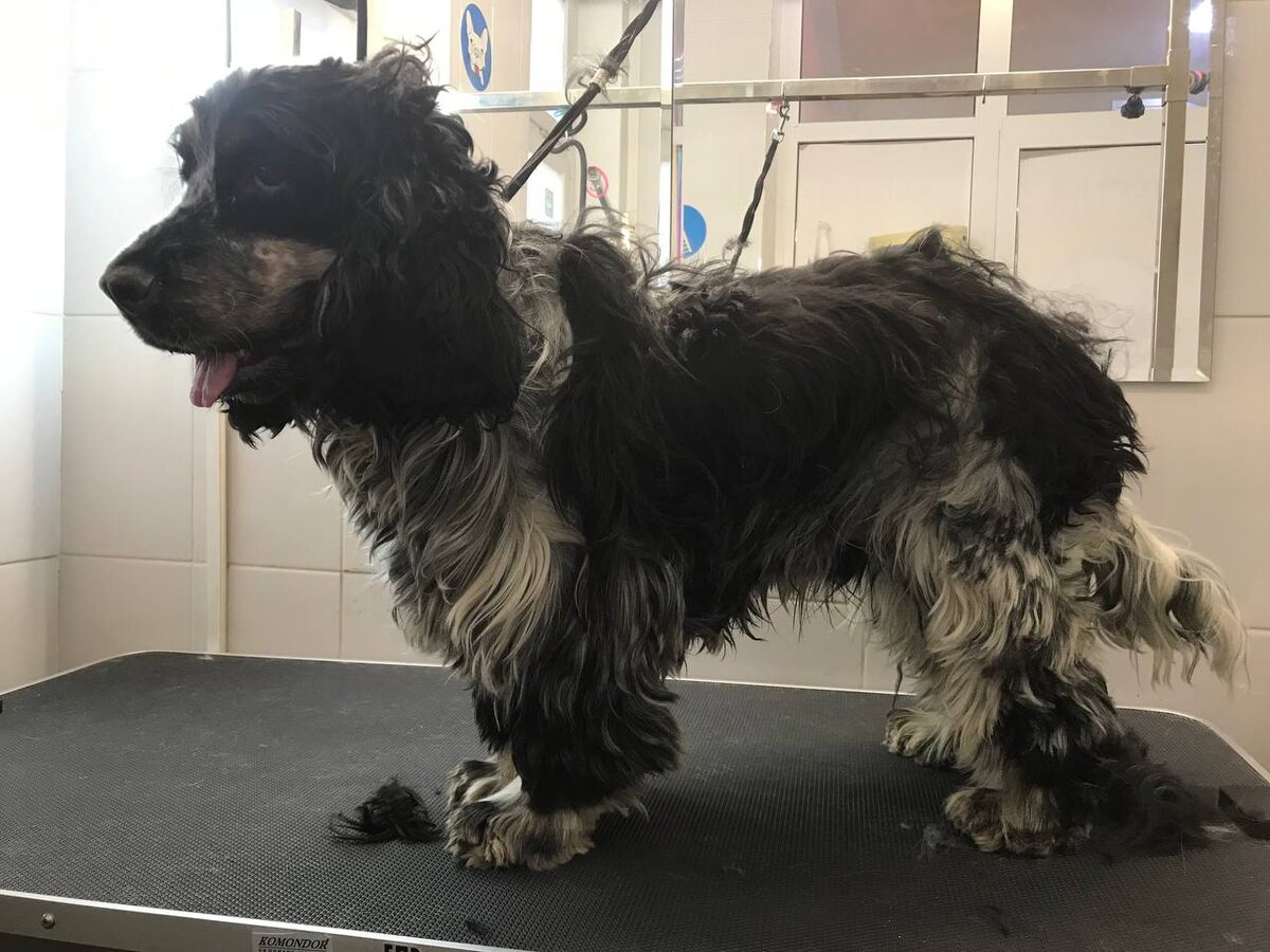 Спаниель. Стрижка под машинку. Тело покороче, лапки чуть длиннее. Отличный мальчик. Сеть кабинетиков Барбос апрель 2025