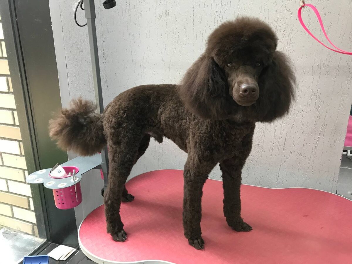 Пудель малый. Июнь 2025. Тело машинкой нож 9мм. Ножки машинкой нож 9мм с корректировкой ножницами. Голова и хвост ножницами. Мордочка (клюв) триммер 1,5мм. Салон БаблГрум Каширское шоссе