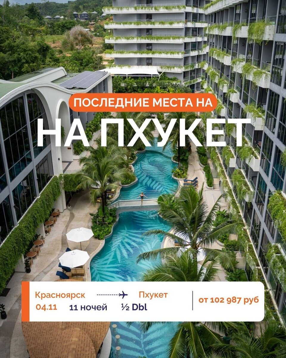 ☀️ *ЛЕТИМ НА ПХУКЕТ В НОЯБРЕ!* *✈️ ВЫЛЕТ 04.11, от 11 ночей, 1/2 DBL* 🏨 отель 3* от 102 987 руб 🏨 отель 4* от 103 494 руб 🏨 отель 5* от 113 299 руб *ГАРАНТИРОВАННОЕ ПОДТВЕРЖДЕНИЕ:* ✅ KARON PRINCESS HOTEL 3* (Пхукет-Карон), Superior Garden View ✅ THE TREND KAMALA 3* (Пхукет-Камала), Deluxe ✅ THE NATURAL RESORT PATONG 4* (Пхукет-Патонг), ROH ✅ NAI YANG BEACH RESORT & SPA 4* (Пхукет-Най Янг), Tropical Wing Sea Turtle Deluxe ✅ TUANA CASA DEL SOL 4+* (Пхукет-Ката), 2 Rooms Family (50–52 м²) 📍*подробнее 280-08-48