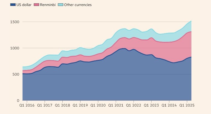 🔸Китай целенаправленно ослабляет гегемонию доллара, активно кредитуя другие страны в национальной валюте