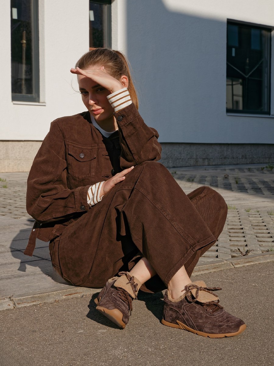 Кроссовки LAUF! из мягкого натурального велюра — как прогулка по осеннему парку: лёгкие, уютные, естественные. Тёплый коричневый оттенок дарит образу глубину и спокойствие, а продуманная форма поддерживает каждое движение.