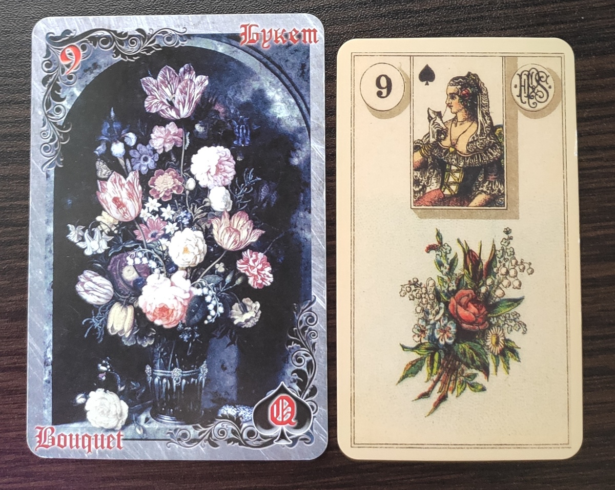 Карта БУКЕТ выполнена в стиле старого замка, а это неприглядные каменные стены, арки. Всё это окружает букет, который стоит в вазе.