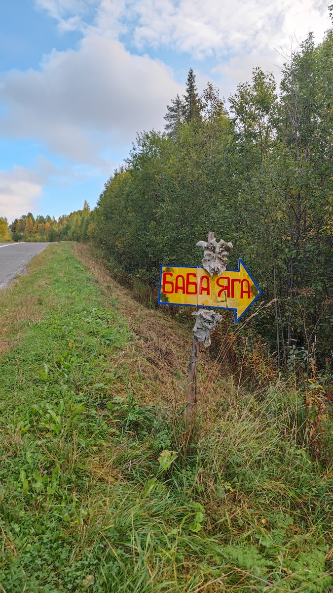Дорога от Онеги к Каргополю петляла вдоль реки, как будто специально мастерила интригу. И тут — бах! — на обочине табличка «Баба Яга». Нормальный человек проедет мимо. Турист же нажмёт на тормоз, потому что таблички с загадками — это бесплатный апгрейд к путешествию. Зашла по тропе — и в глуши меня ждала Баба‑Яга. В натуральную величину: избушка на курьих ножках, ступа припаркована возле, метла аккуратно прислонена, как будто Яга только что сходила за хлебом. Сцена из старой сказки? Ну да, но с современными нотками: на крыльце висит табличка «Парковка для ступ» и небольшой рекламный плакат «Мастер‑класс по варке зелий — по записи». Я даже начала цитировать классиков, чтобы создать атмосферу: Там на неведомых дорожках Следы невиданных зверей; Избушка там на курьих ножках Стоит без окон, без дверей; Я подошла, а она меня встречает как соседка в подъезде: «Зачем пришла? Чаю? Сплетен?» Правда, ни меда, ни пива мы не пили — Яга на диете и пилит куриные ножки на фитнес‑дорожке.