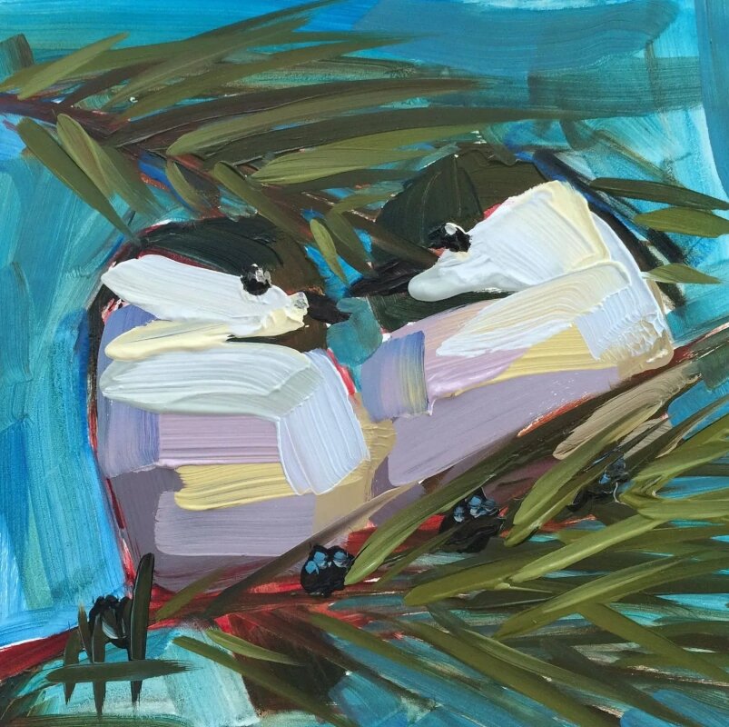 Американская художница Анжела Моултон (Angela Moulton) пишет своих птиц слоями густой масляной краски, в абстрактном стиле, фиксируя не столько саму птицу, сколько впечатление от нее — не птицу, которую мы видим в бинокль или на качественном фото, а птицу, которую мы видим несколько секунд издалека, улавливая лишь сочетание цветов и форму пернатого объекта. Очень приятно смотреть на этот цветовой пир в пасмурную осеннюю погоду, которая сулит впереди мокрый снег и слякоть.