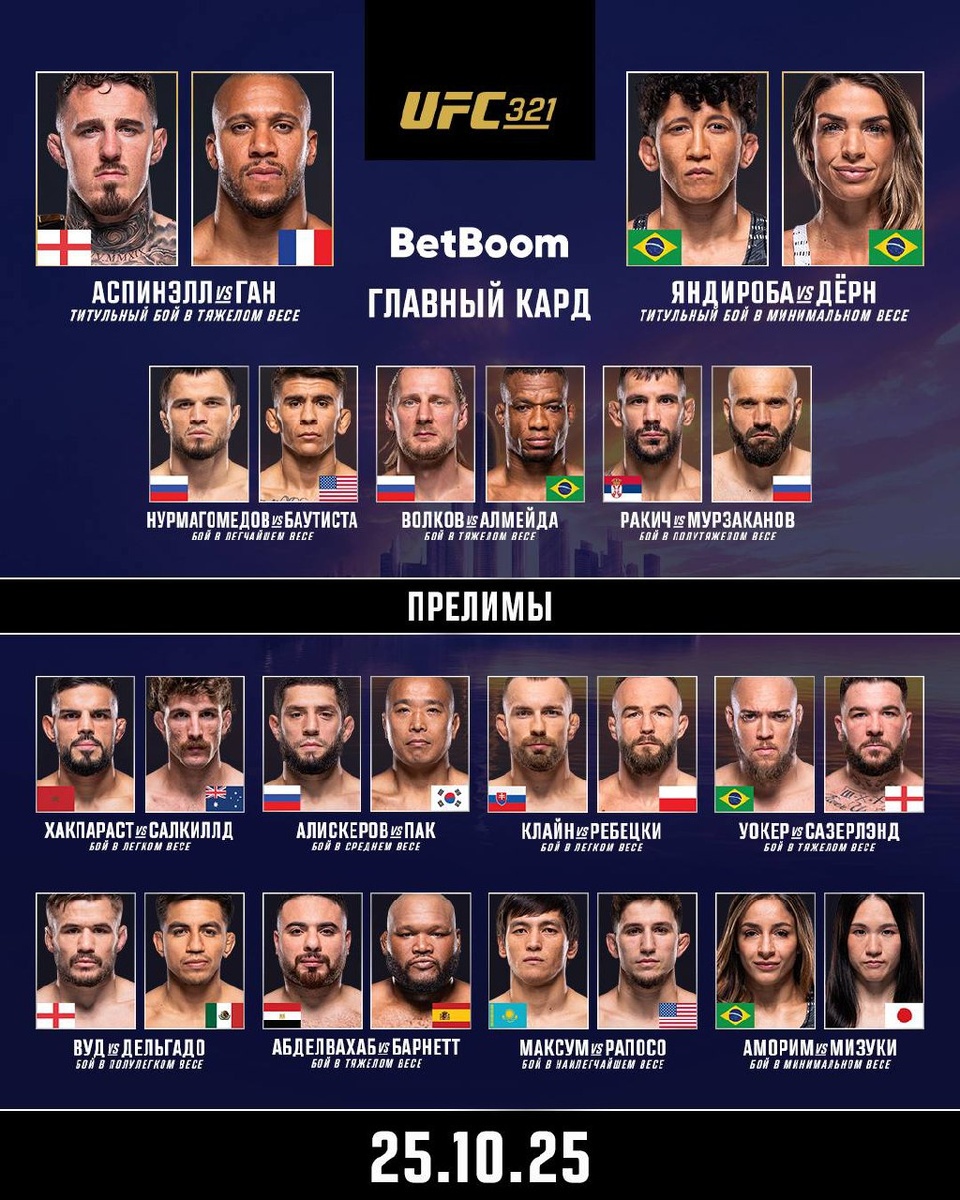 ❤️ Сделать ставку по промокоду UFC25 можно в BetBoom: https://betboom.ru/link/w7arK7/