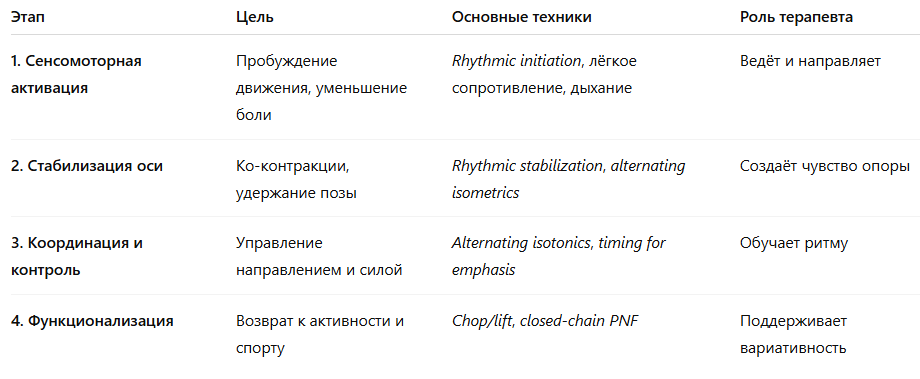 Эта идея легла в основу современной периодизации в физической терапии и спорте. 🧠 PNF = нейромоторная периодизация.