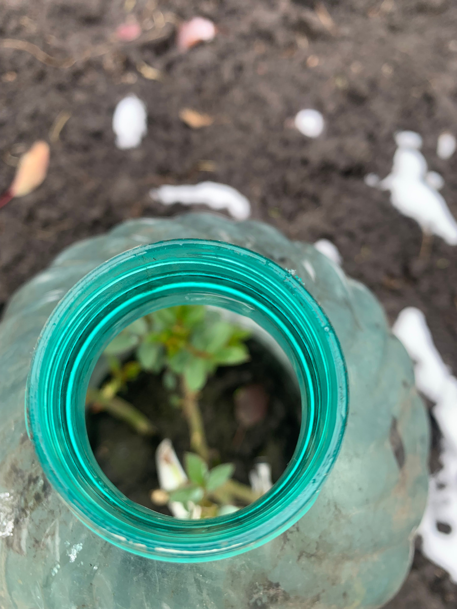 Перед укрытием розариев заглянула в бутылки, а там розы растут. Так с бутылками и в зиму их оставила.