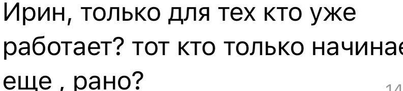 Вопрос: Ирин, только для тех кто уже работает? тот кто только начинаешь, рано?