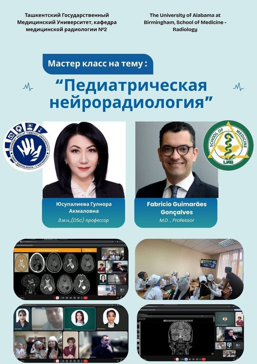 ➡️25 октярбя 2025 года на кафедре Медицинской радиологии №2 Ташкентского государственного медицинского университета состоялся мастер-класс на тему «Педиатрическая нейрорадиология», организованный совместно с University of Alabama at Birmingham, School of Medicine – Radiology.