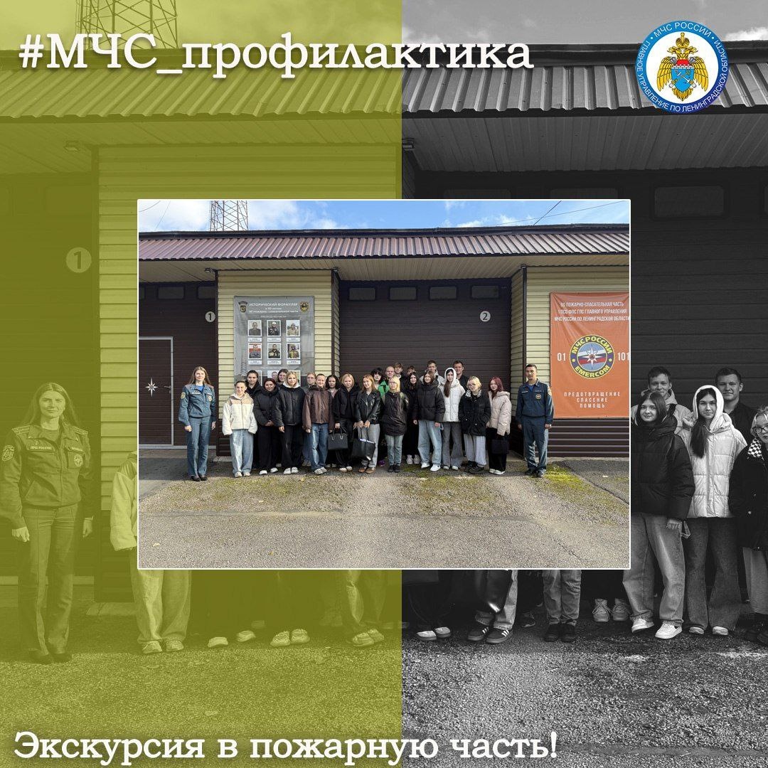 🧑🚒 В рамках Всероссийской акции «Неделя без турникетов» студенты ЛГУ имени А.С. Пушкина посетили 60-ю пожарно-спасательную часть. Экскурсию для них провели инспектор ОНД и ПР Волховского района и пожарный МЧС России.