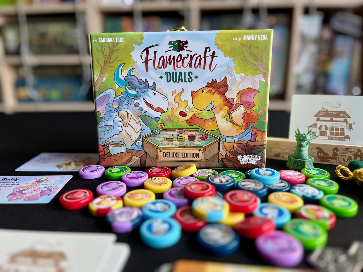 Это правда не просто коробка – это произведение настольного искусства. Сундучок, который превращается в игровое поле, хранилище для великолепных фишек драконов, металлических монет, пластиковых карт, деревянных подставок и бархатного мешочка. Просто праздник для истинного кинестетика.