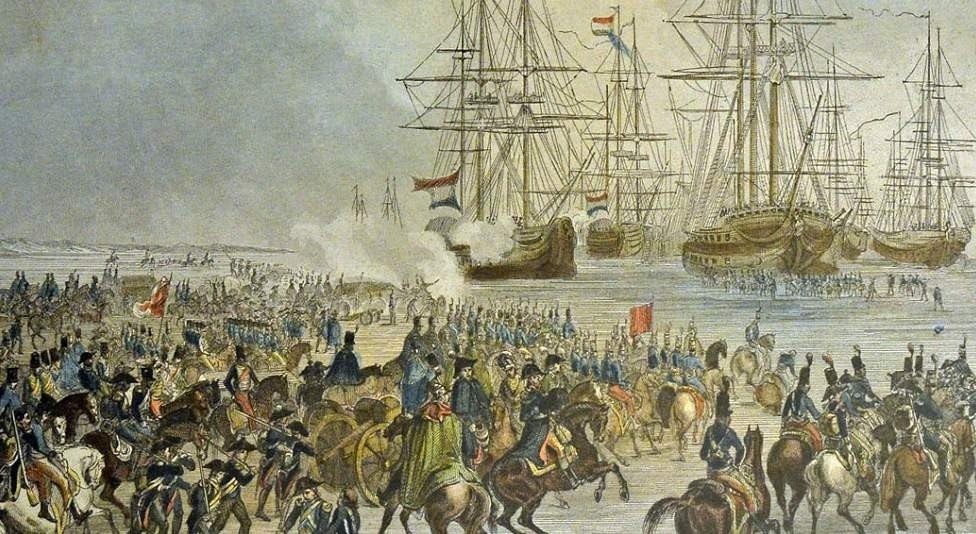 ❄️🎖 Ледяной триумф: кавалерия против флота Знаете ли вы, что в 1795 году французские гусары совершили невозможное — захватили в плен... целый военный флот! Во время франко-голландской войны 14 кораблей голландского флота застряли во льдах у берегов Северного моря. → Дата: 23 января 1795 года → Место: залив Зёйдерзе, Нидерланды → Силы сторон: 128-й французский полк против 14 военных кораблей 📌 Как это произошло: • Экстремальные морозы сковали льдом всю акваторию • Корабли потеряли манёвренность и стали легкой мишенью • Французские гусары просто подъехали к кораблям по льду 🔬 Исторический контекст: • Это единственный случай в истории, когда конница взяла в плен флот • Голландские моряки сдались без боя — стрелять по кавалерии из корабельных пуль было бесполезно • Все 14 кораблей вошли в состав французского флота 🏆 P.S. Командир кавалерийского отряда позже шутил: «Это была самая длинная кавалерийская атака в истории — мы преодолели целых 5 миль по льду!»