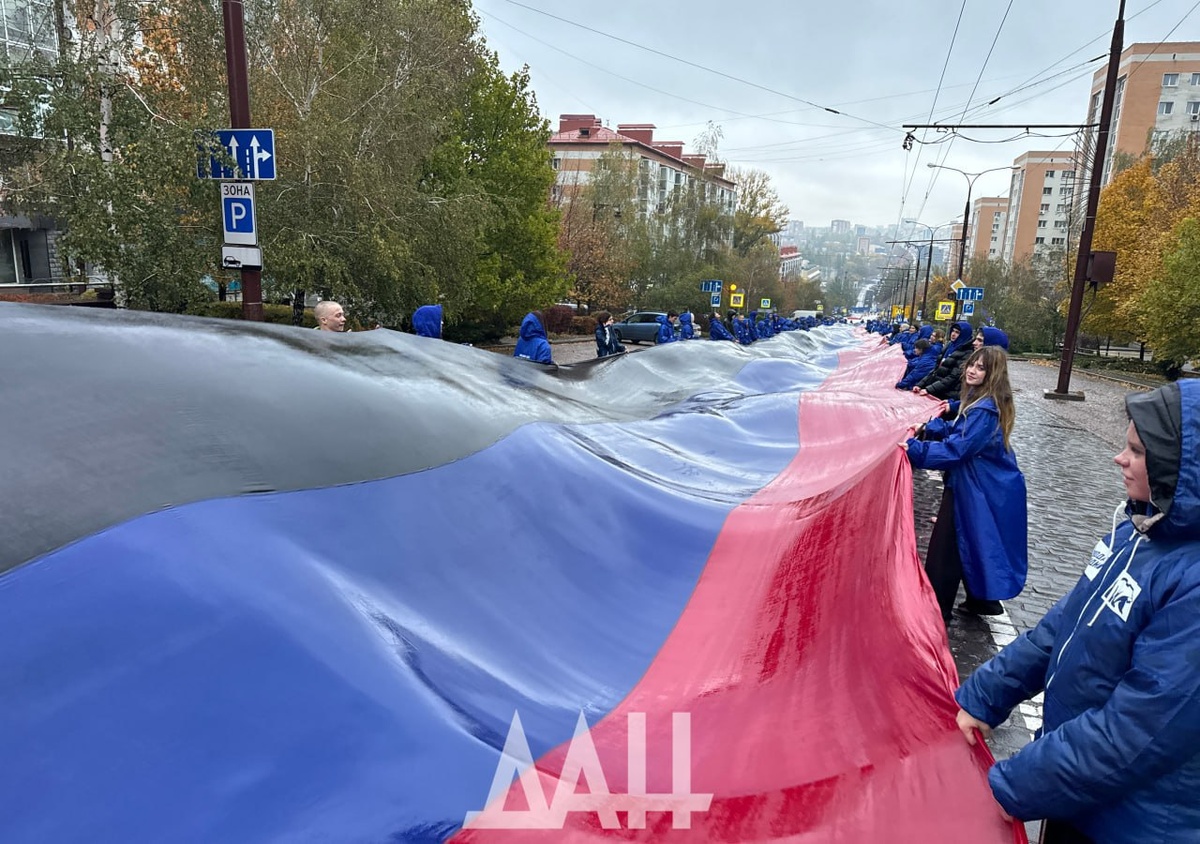 В Донецке развернули 200-метровый триколор Республики в День флага ДНР