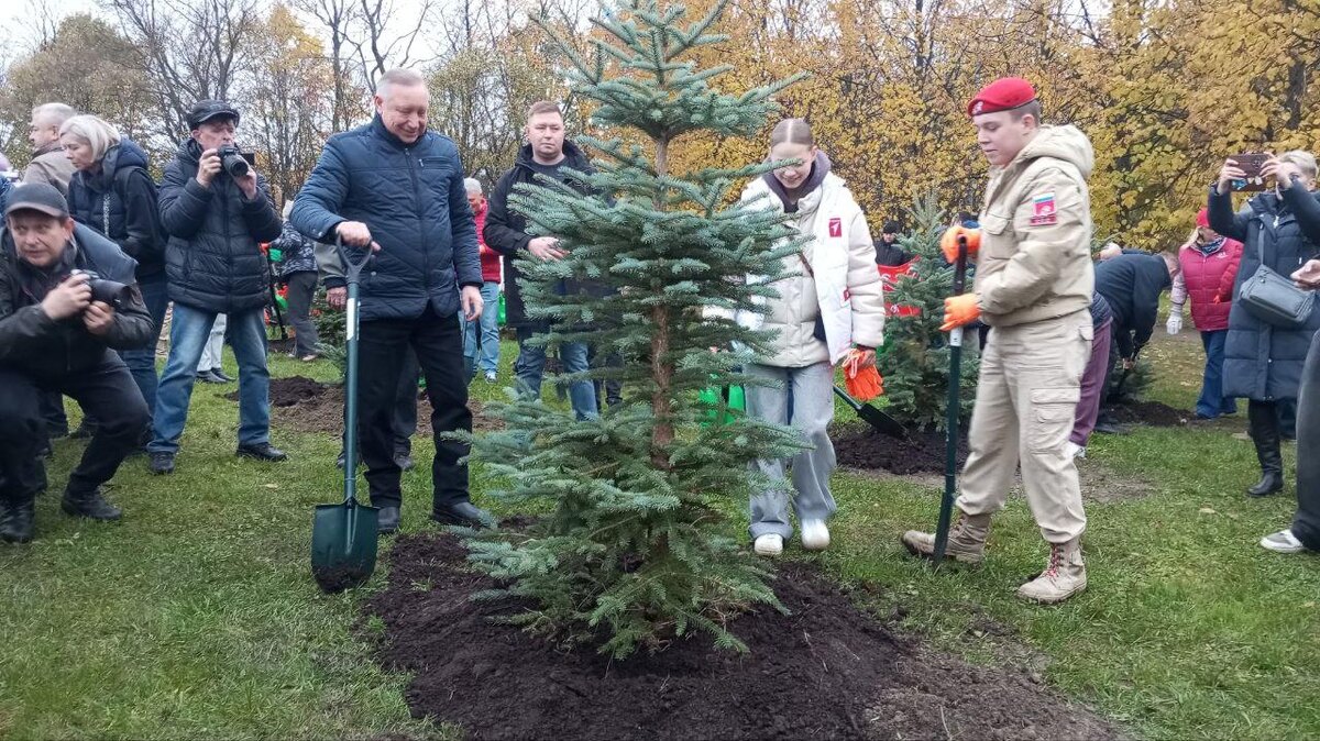 В парке 300-летия Петербурга губернатор помог посадить сизую ель. Всего их здесь сегодня стало на 80 больше. Цифра не случайная – именно столько лет исполнилось в этом году Победе в Великой Отечественной войне.
