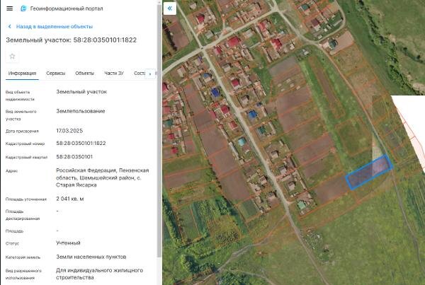Название: Земельный участок из земель населенных пунктов с кадастровым номером 58:28:0350101:1822, общей площадью 2041 кв.м., с видом