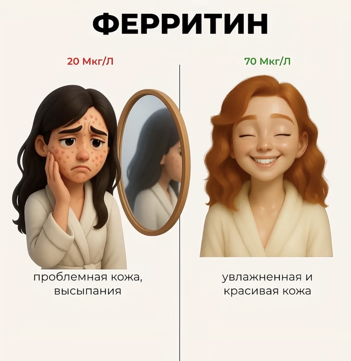 Низкий ферритин — это не просто «упадок сил», это серьезное состояние, которое медленно, но верно подрывает все системы организма. Оно крадет у вас энергию, ясность ума, красоту и здоровье. Опасно не только само состояние, но и его последствия, особенно если его игнорировать годами.