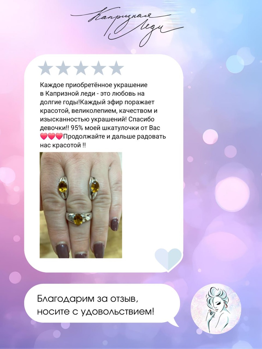 Ваши отзывы 💌 Благодарим вас за теплые слова и прекрасные фотографии, которыми вы делитесь с нами! Ваше доверие и поддержка невероятно важны для всей команды «Капризной Леди». Каждый отзыв вдохновляет нас, чтобы радовать вас снова и снова. Спасибо, что выбираете нас и делаете нашу работу по-настоящему значимой. Как оставить отзыв: – Перейдите в раздел с отзывами на странице сообщества ⭐️ВК: vk.com/reviews-195494352 или поделитесь впечатлениями на ⭐️ Яндекс: yandex.ru/maps/org/5... – Поставьте оценку, прикрепите фото и напишите несколько слов о покупке и магазине💫 С искренней благодарностью, Ваша Капризная Леди 💎 #отзывы@kaprizlady