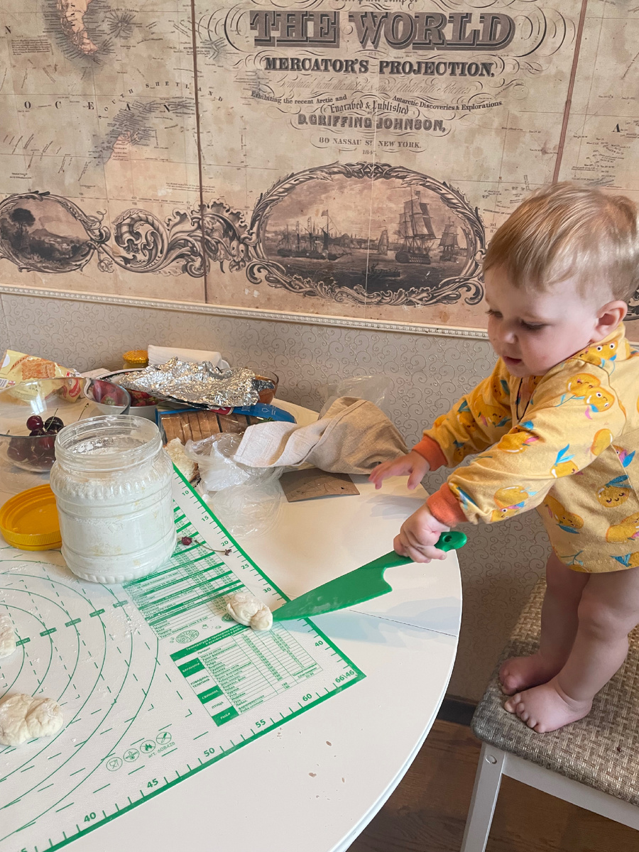 Начнем с того, что я им позволяла и позволяю готовить со мной еду. Ну как готовить... со стороны - мешаться под руками и ногами. Особенно, сейчас, когда наши младшенькие берут стулья, тащат их на кухню. Забираются на них и помогают. Могут ложкой положить в бульон порезанную мамой картошку, могут воду включить и затопить все на столешнице.