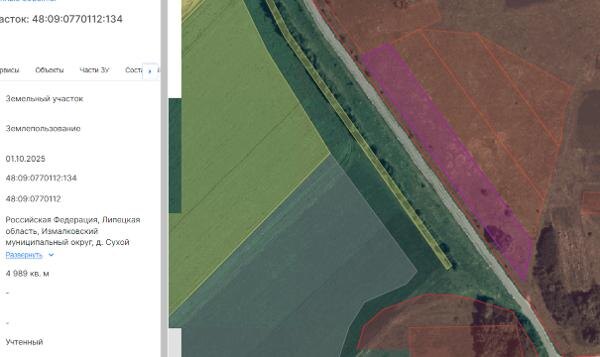 Название: Аренда земельного участка из земель населенных пунктов общей с кадастровым номером 48:09:0770112:134 площадью 4989 кв. м с видом разрешенного использования «для ведения личного подсобного хозяйства» (местоположение земельного участка: Российская Федерация, Липецкая область, Измалковский муниципальный округ, д. Сухой Семенек). Канал: Госземля Липецкая область Область: обл Липецкая Район: м.о. Измалковский Населенный пункт: д Сухой Семенек Локация: Смотреть на карте ВРИ: Для ведения личного подсобного хозяйства (приусадебный земельный участок) Кадастровый номер: 48:09:0770112:134 Кадастровая стоимость: - Вид сделки: Аренда Площадь: 4989 м² Начальная цена: - руб. Дата завершения: 23.11.2025 Подробнее: ГИС ТОРГИ #госземля #земляотгосударства #земля #земельныйучасток #земельныеторги #торги #аукцион #арендаземли #аренда #липецкаяобласть