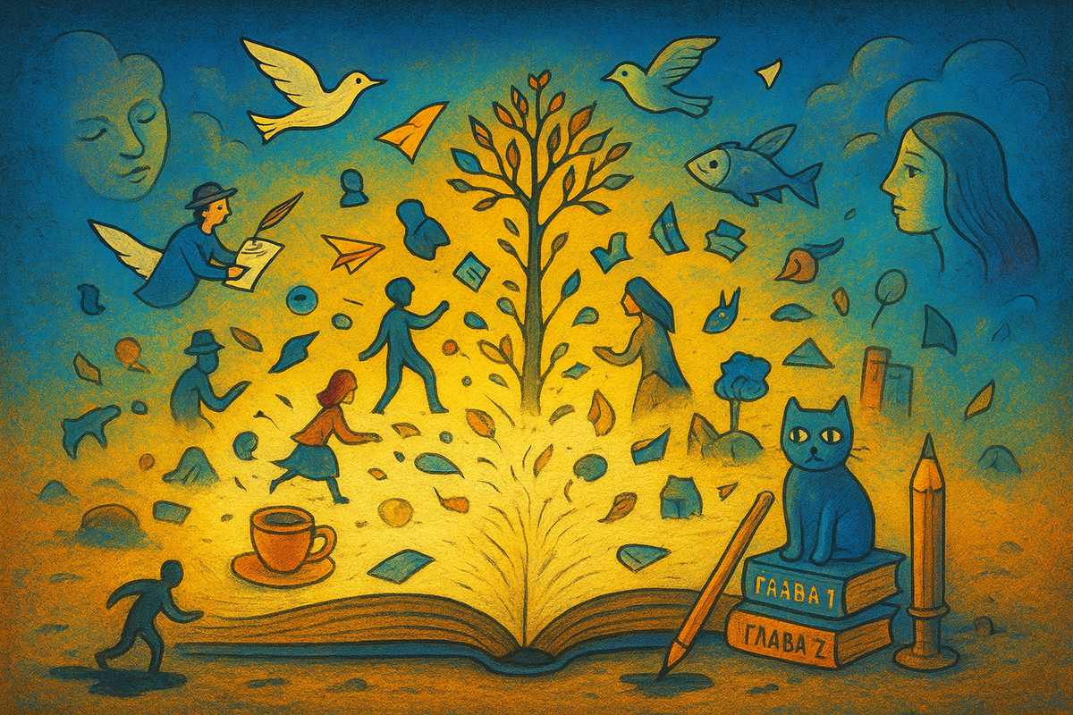 Зачем это нужно? Перед тем как писать книгу, полезно собрать воедино все смысловые блоки, образы, темы, которые тебя самого вдохновляют вообще или конкретно на эту книгу. Это не план. Это банк ресурсов. Когда в середине ноября вдруг закончится творческое топливо — вы откроете этот список и вспомните, зачем вообще начинали.