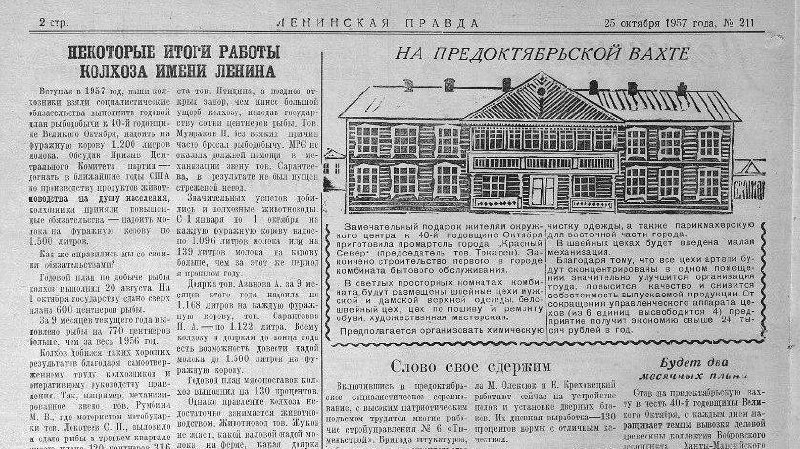 68 лет назад в Ханты-Мансийске открылся первый комбинат бытового обслуживания 🗓️ 25 октября (по старому стилю) 1957 года к 40-й годовщине Октября (Октябрьской революции) подарок жителям Ханты-Мансийска приготовила промартель «Красный Север». Закончено строительство первого в городе комбината бытового обслуживания! 📄 Как сообщала тогда газета «Ленинская правда» от 25 октября 1957 года, № 211: «В светлых просторных комнатах комбината будут размещены швейные цехи мужской и дамской верхней одежды, белошвейный цех, цех по пошиву и ремонту обуви, художественная мастерская». Предполагалось также организовать химчистку одежды, а также парикмахерскую для восточной части города. 🔩 В швейных цехах планировали ввести малую механизацию. «Благодаря тому, что все цехи артели будут сконцентрированы в одном помещении, значительно улучшится организация труда, повысится качество и снизится себестоимость выпускаемой продукции», - рапортовала «Ленинская правда». По рассказам старожилов, тот ста