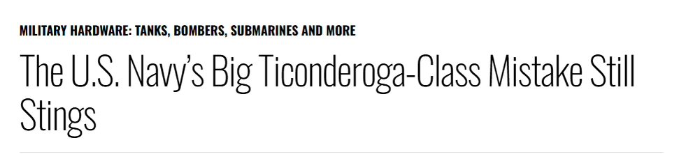 Американская National Security Journal вышла с громким заявлением: «Как ВМС США обожглись на “Тикондероге”: провал, который до сих пор болит». И, судя по тону, у флота США действительно всё болит. Особенно — в кошельке.