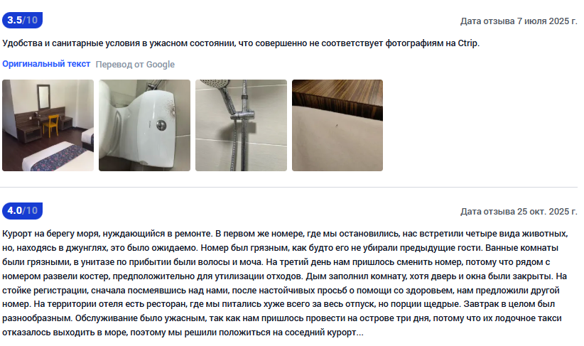 И не удивляет что отзывы на него в системах бронирования от возмущенных