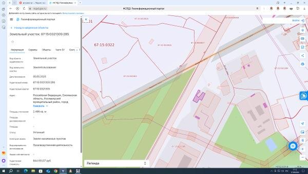 Название: Земельный участок, свободный от застройки, из земель населенных пунктов, площадью 2496 кв.м., кадастровый номер 67:15:0321305:285