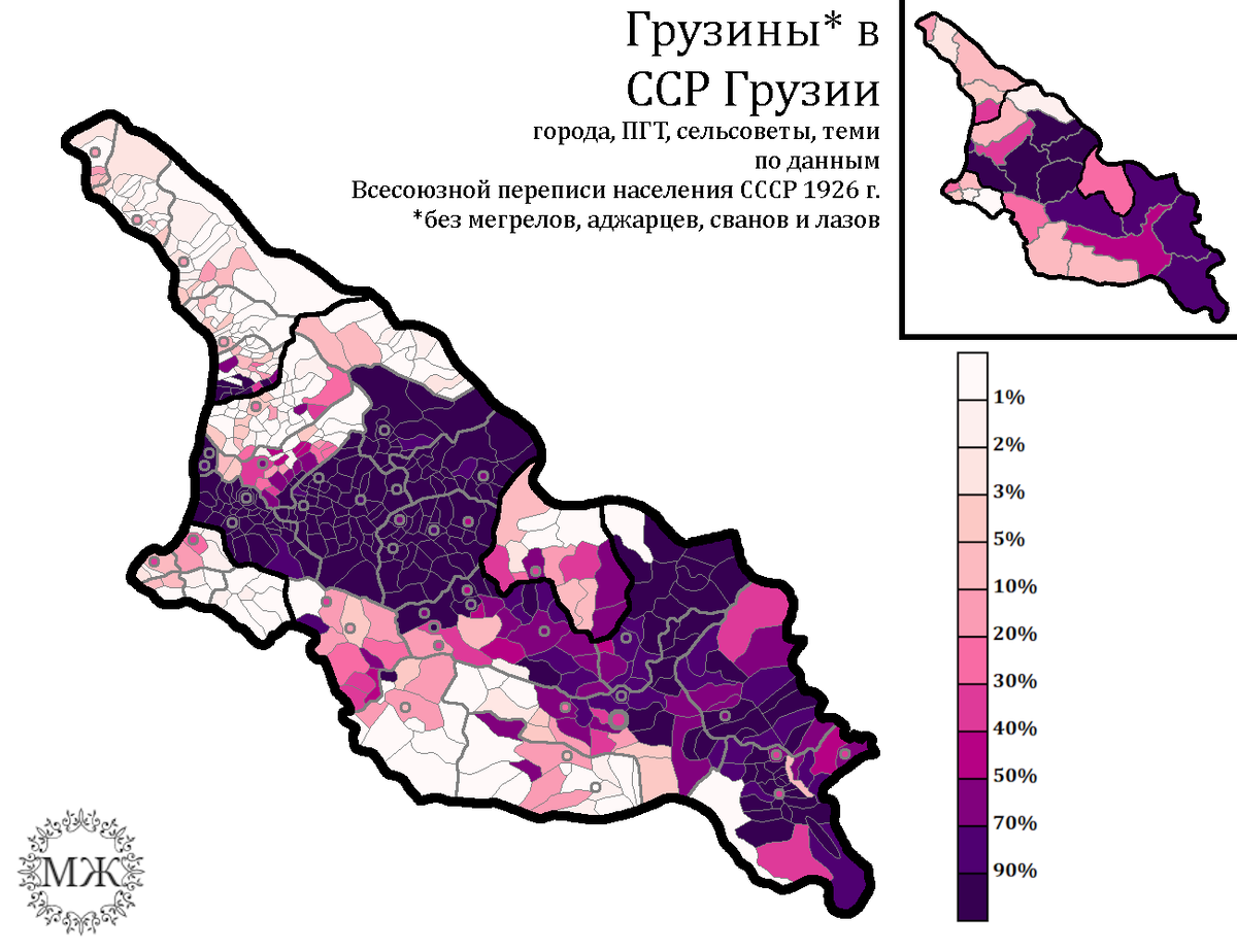 В конце концов, мы знаем дальнейшее отношение советской власти и властей уже независимой Республики Грузия по отношению к рассмотренным этносам, по переписи 1939 года и далее они отдельно не учитывались и указывались как грузины. Собственно и перепись 1926 года была неоднозначной, указывая их как вместе, так и отдельно. Опираясь на это, взглянём на них, как на единое целое.