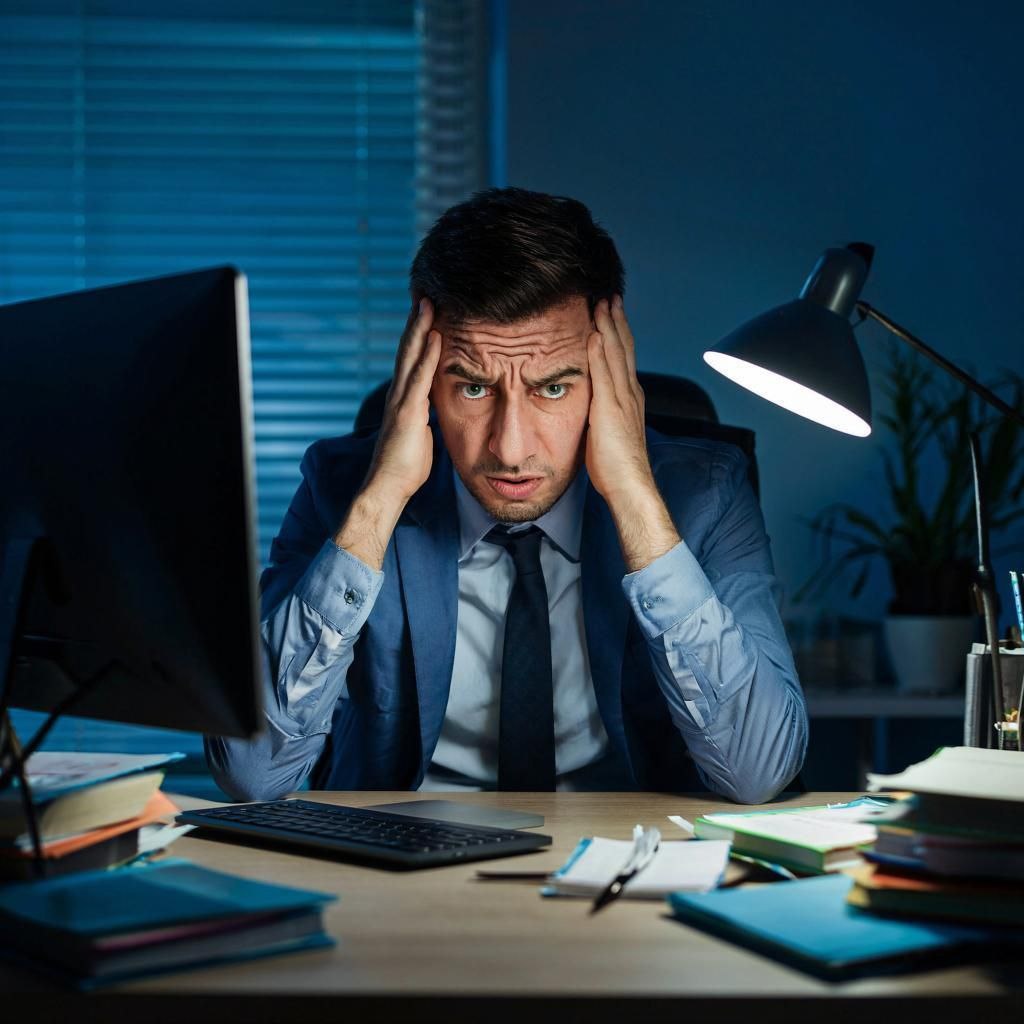 Сотрудник в ступоре смотрит в монитор, не может принять простое решение, отстраняется от команды, не просит о помощи.