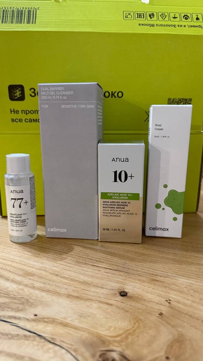 Но вернемся к более прозаичным темам🤦🏻♀️ 🍂 Осень пришла — и моё лицо решило зацвести всеми красками 😅 Видимо, организм решил, что раз листья опадают, то кто-то должен взять на себя роль ярких пятен. Поэтому я пошла на спасательную миссию и закупилась уходом. Вот мои герои: 🧴 Celimax Dual Barrier Mild Gel Cleanser — мягкий гель для умывания для чувствительной и сухой кожи. Не стягивает, не сушит, пахнет почти ничем (а это редкость!). Классно очищает, но оставляет кожу «живой», не как пергамент. 💧 Anua Azelaic Acid 10+ Hyaluron Serum — азелаиновая кислота + гиалурон. Снимает покраснения, выравнивает тон, и не печёт, как половина кислотных сывороток. Приятный текстурно и реально делает кожу спокойнее. 🌿 Anua Heartleaf 77+ Toner mini — тестирую версию для поездок (вдруг бы не подошел, но подошел). Увлажняет и немного успокаивает кожу, особенно после ветра или отопления. 🥛 Celimax Noni Cream — плотный, но не жирный крем. Идеально, особенно когда кожа «просит пить». Упругая,
