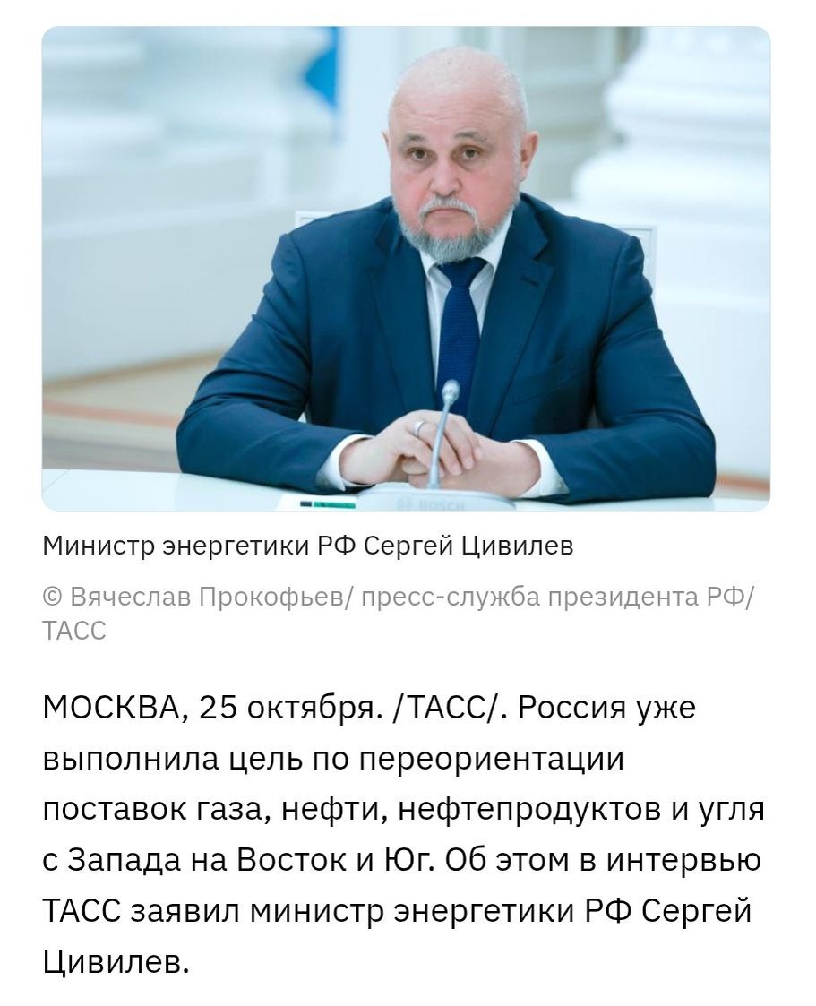 Стратегическая цель по переориентации поставок газа, нефти, нефтепродуктов и угля на Восток и Юг уже выполнена