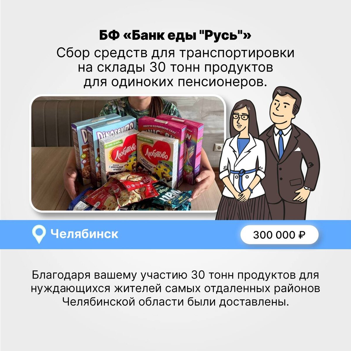✅ Сбор средств для транспортировки на склады 30 тонн продуктов для одиноких пенсионеров.