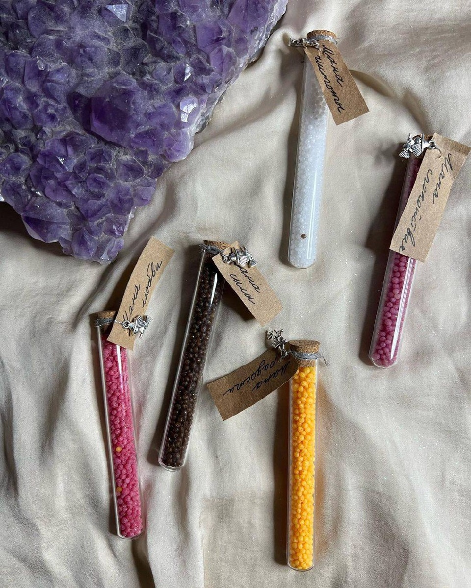 Мана☘️ Мана — это несублимированная духовная энергия. Именно из нее формируется материальная Вселенная. А вот манипуляции с нею позволяют ведьмам и магам достигать целей – допустим, влиять на погоду и урожай, притягивать любовь, лечиться и т.д. Каждый, кто плотно занимается магией, вкладывает в свои заклинания именно ману. Таким образом мана от «Ведьмы в тебе» – это концентрат такой энергии для колдовства, заключенный в виде шариков в пробирочки и заряженный ритуалом. Они вкусно пахнут маслами, а добавлять их нужно по чуть-чуть в ритуальные ванны, зелья, подношения для божеств. Шарики растворяются в воде. Всего мы сделали 5 видов ман: 🧪 мана магической силы (усиливает творимую магию, пахнет кофе) 💎 мана спокойствия (успокаивает, пахнет лавандой) ❤️ мана любви (привлекает любовь, пахнет инжиром) 🦄 мана радости (даёт позитивный настрой, пахнет апельсинкой) 💧 мана чистоты (очищает, лёгкий парфюмерный аромат) Цена 1400 рублей